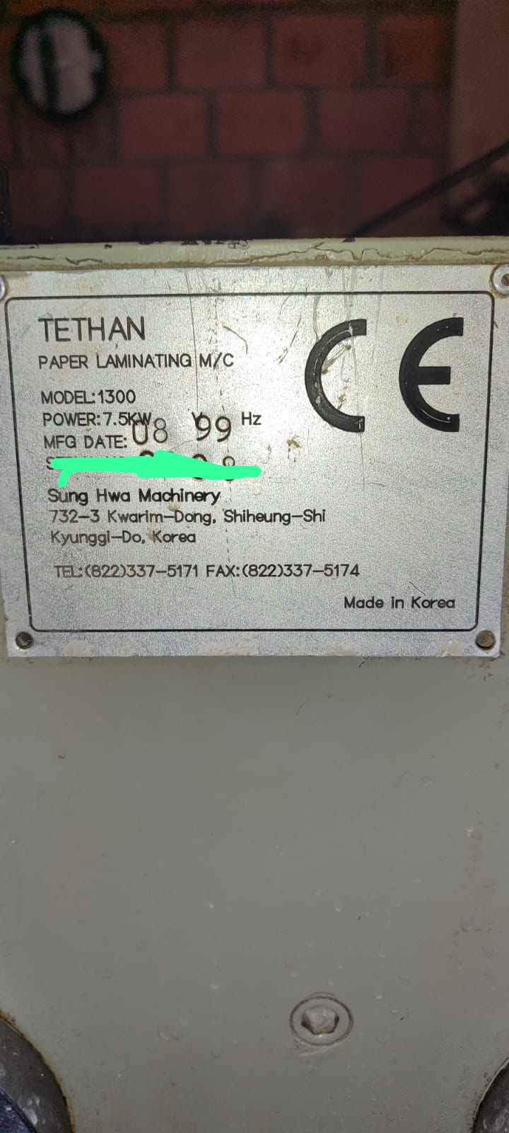 Acopladeira de papelão ondulado usada, marca Tethan – koreana, modelo 1300, ano 1999, largura de 1300 mm