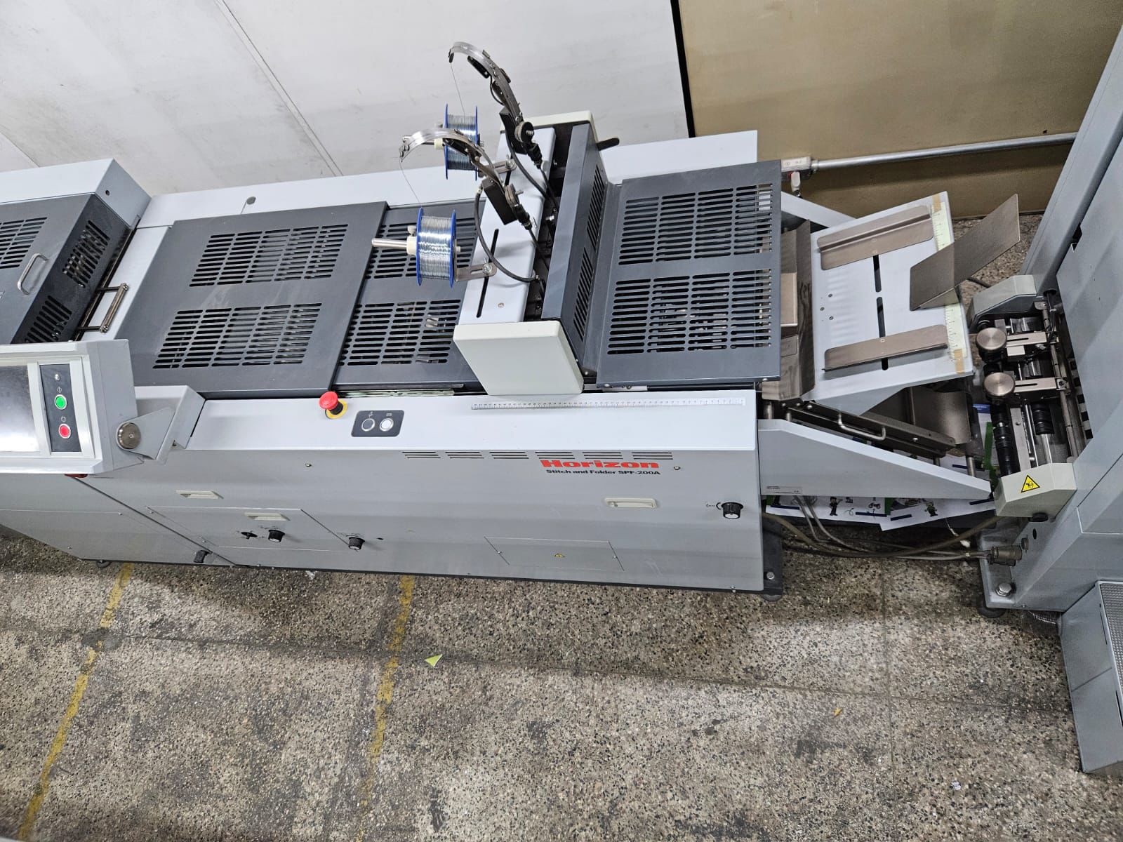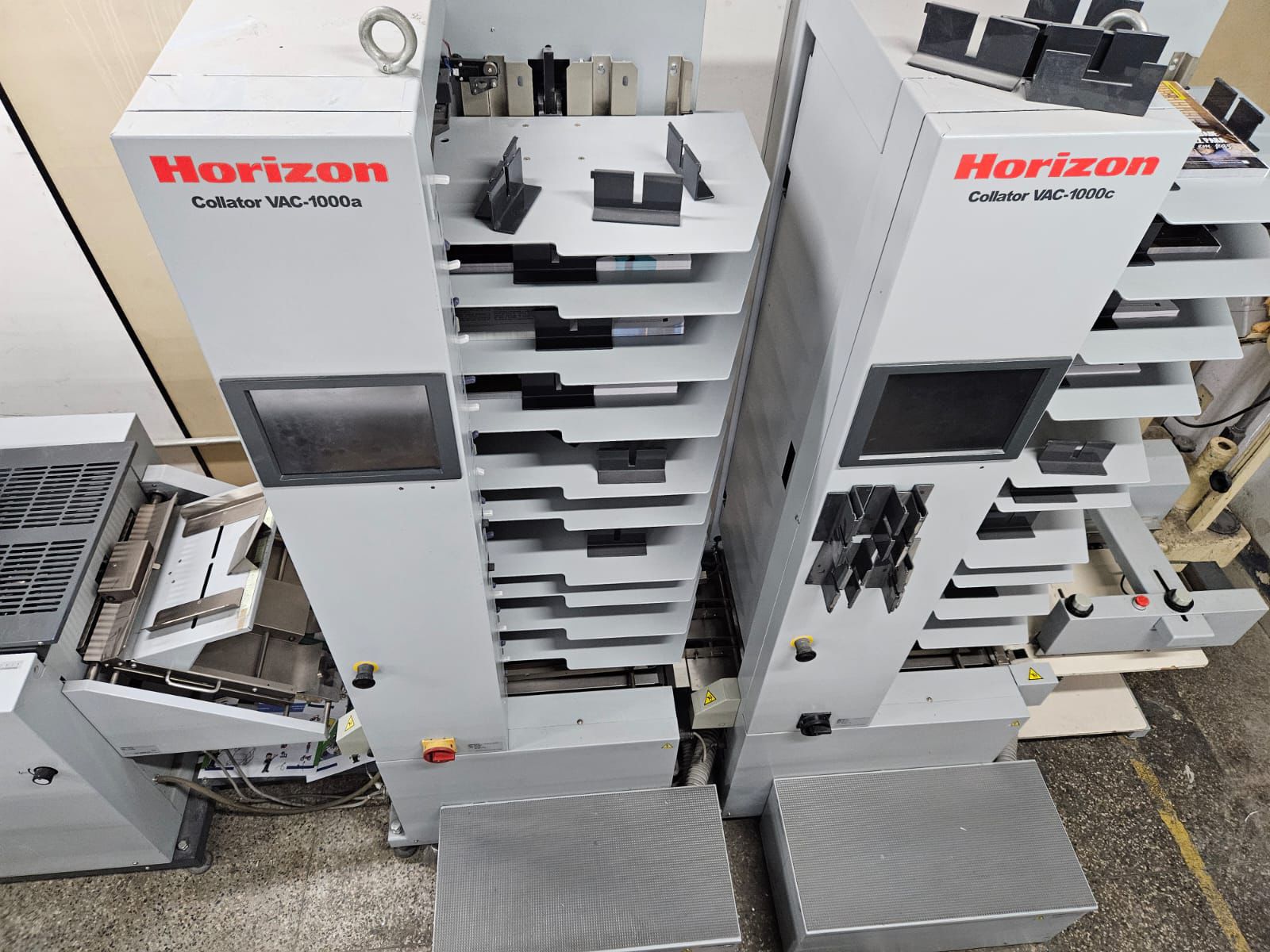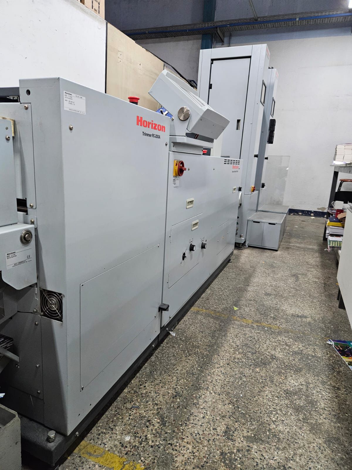 Alceadeira de torre usada, marca Horizon, modelo SPF 200A, ano 2013, formato máximo 356 x 508 mm, formato mínimo 120 x 180 mm, alceamento com 2 torres de 10 gavetas cada, gramatura de 64 a 157 g/m, painel touch screen
