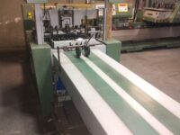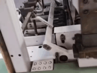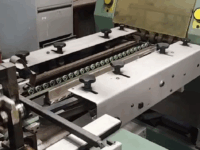 Alceadeira e grampo usada, marca Muller Martini, modelo Presto, ano 2003 com 6 estações de alceamento, unidade de grampo com 2 cabeçotes, trilateral na saída.