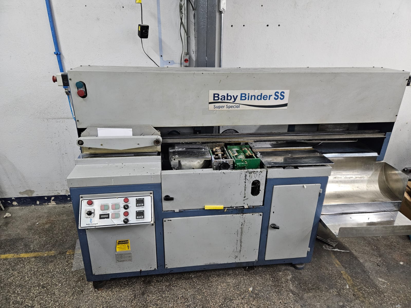 Encadernadora de livros lombada quadrada usada, marca Radial, modelo BabyBinder SS, ano 2017, uma gaveta, fresa, hotmelt + PUR – coleiro teflonado.