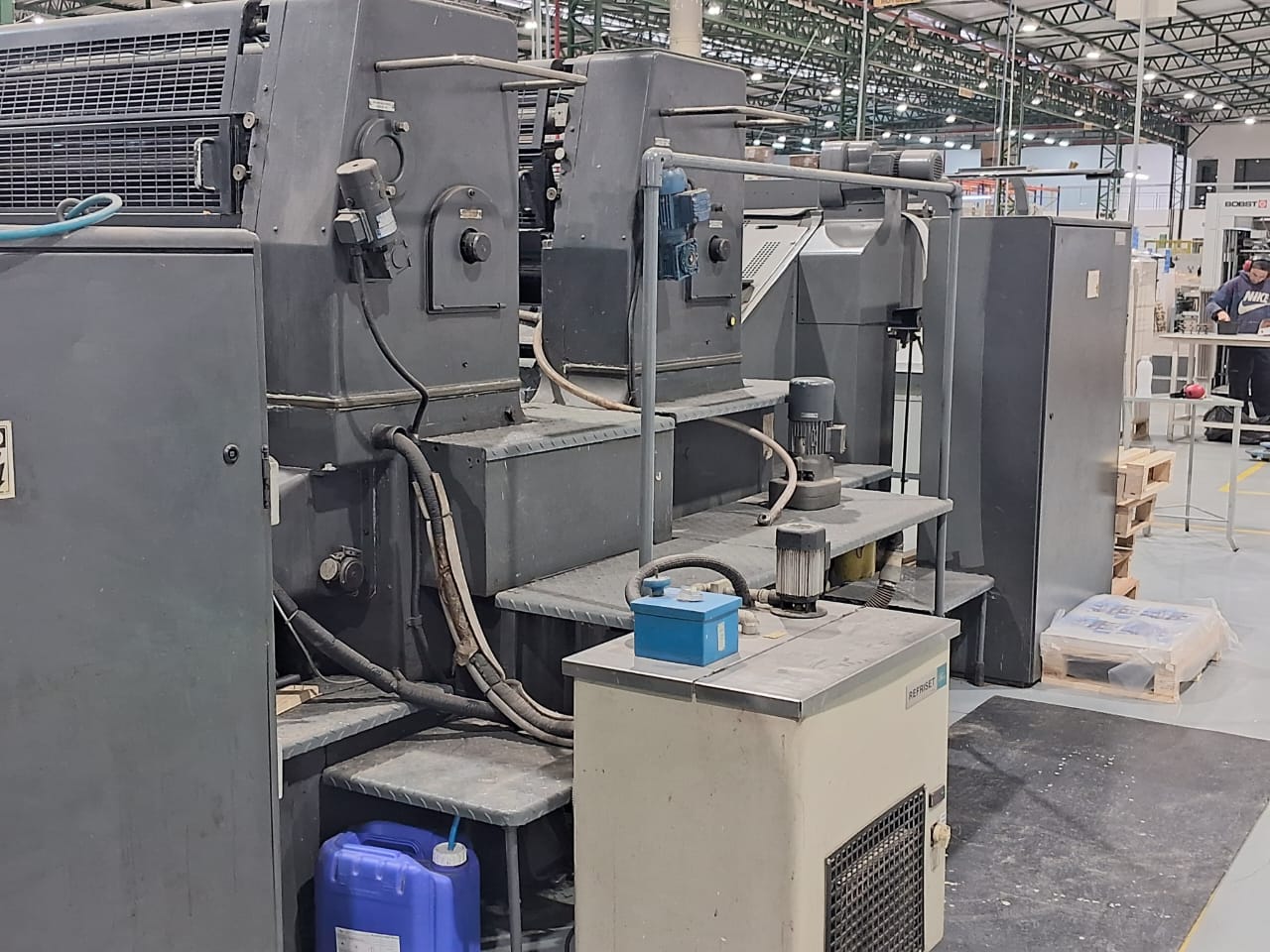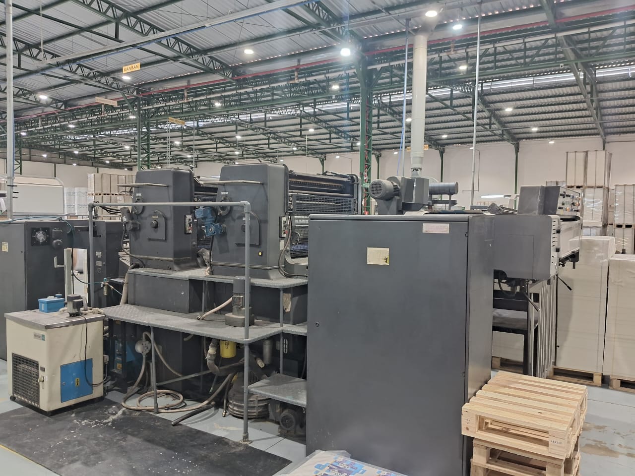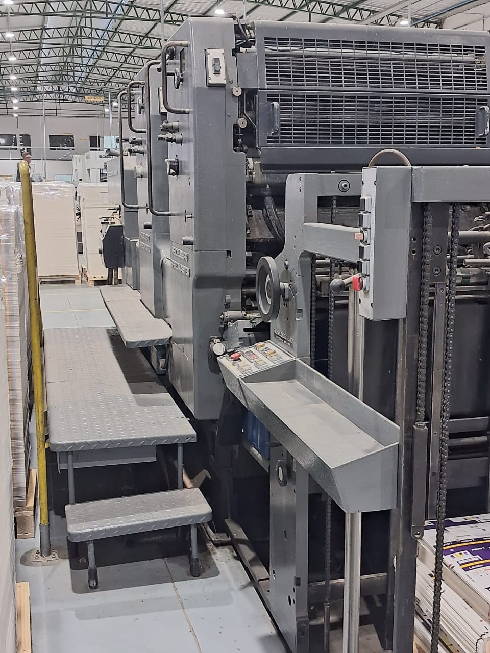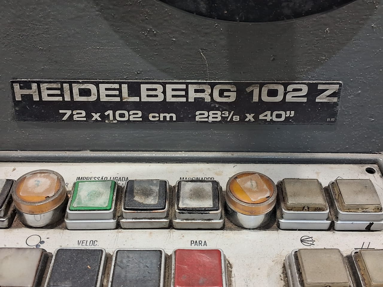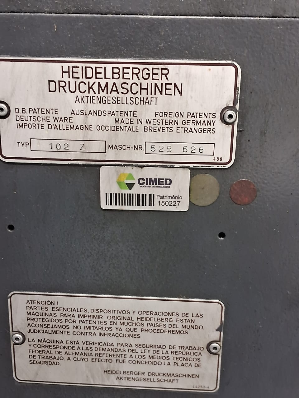 Impressora offset usada, marca Hiedelberg, modelo SM 102 Z, ano 1986, bicolor, formato 72 x 102 cm, equipada com molha Alcolor, em produção.