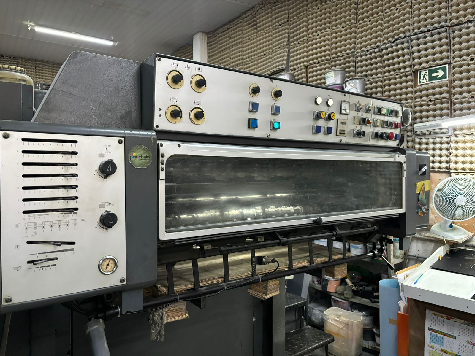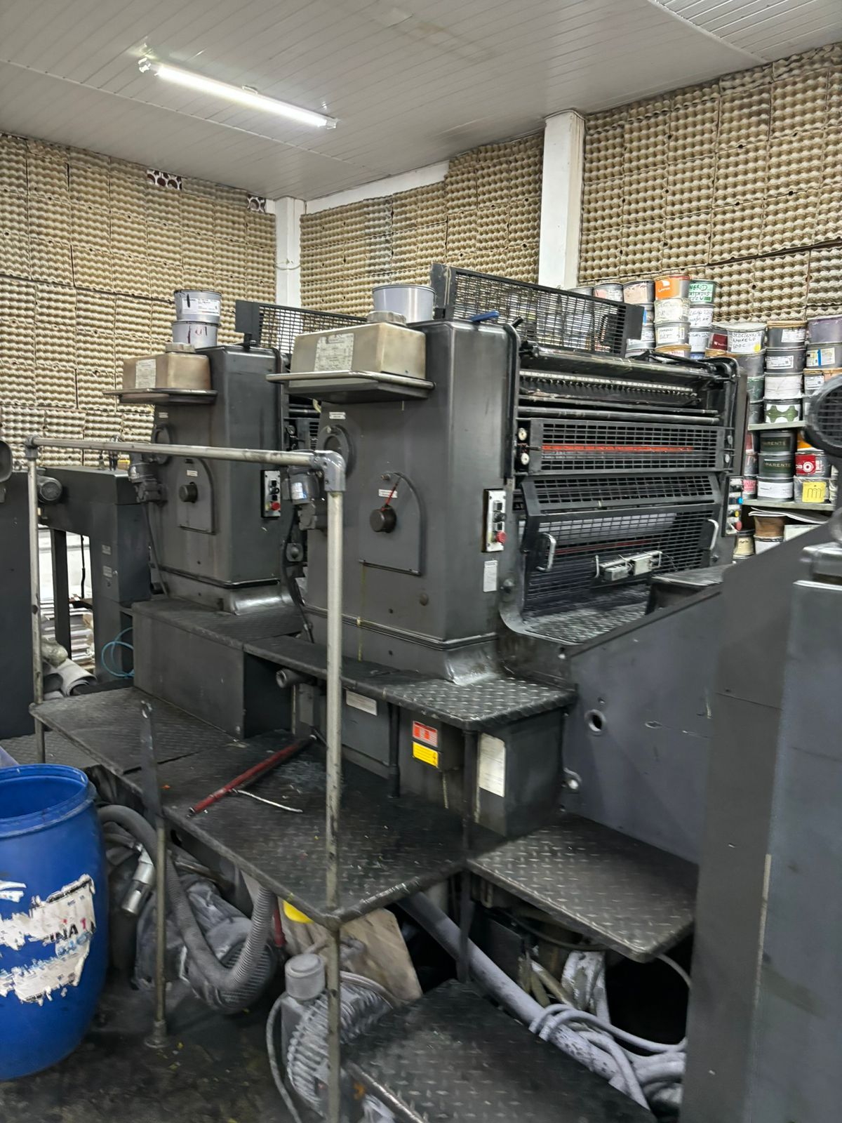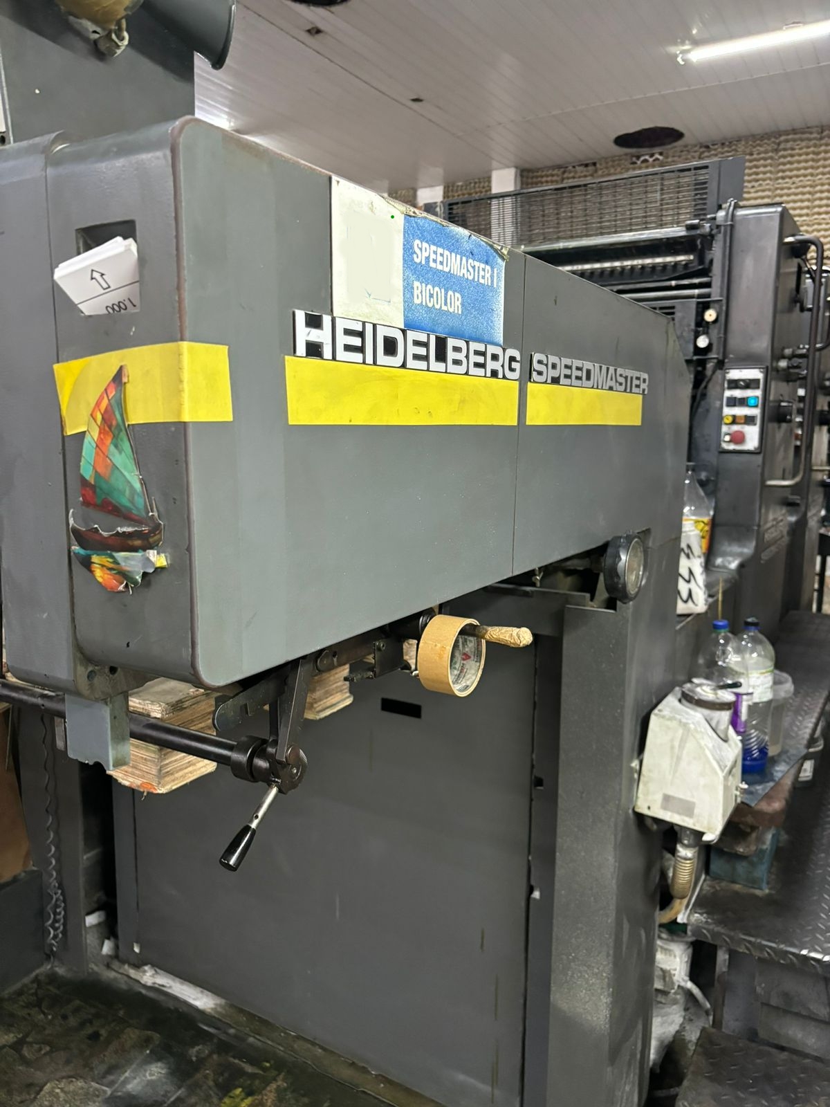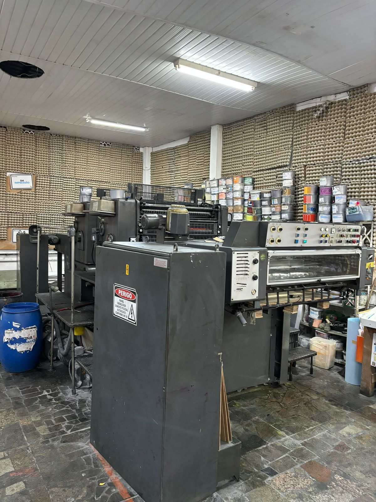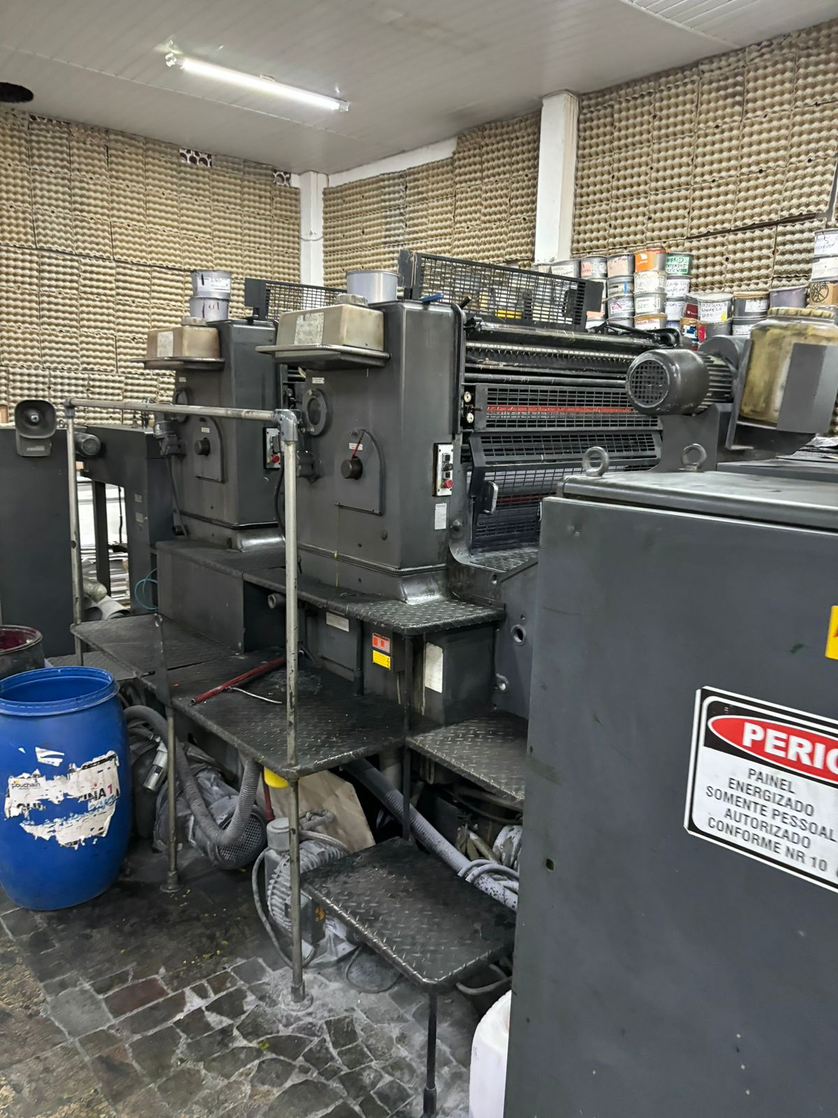 Impressora offset usada, marca Heidelberg, modelo SM 102 ZP, ano 1986, bicolor, formato 72 x 102 cm, equipada com molha convencional, reversão, em produção.
