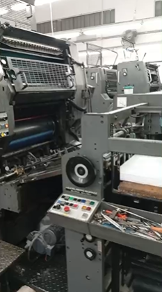Impressora offset usada, marca Heidelberg, modelo SORMZ, ano 1994, bicolor, formato 52 x 74 cm, equipada com molha Alcolor, em produção.