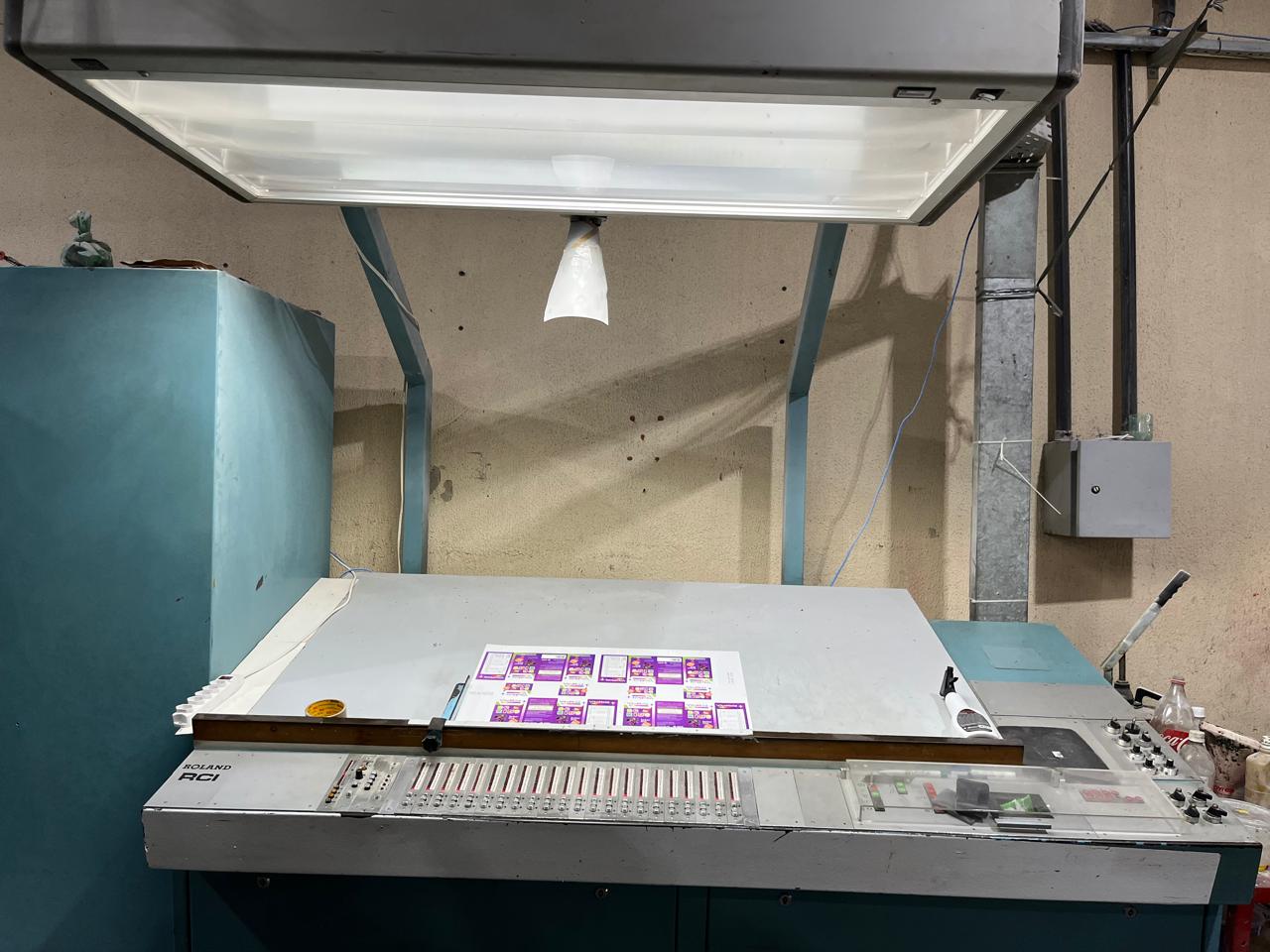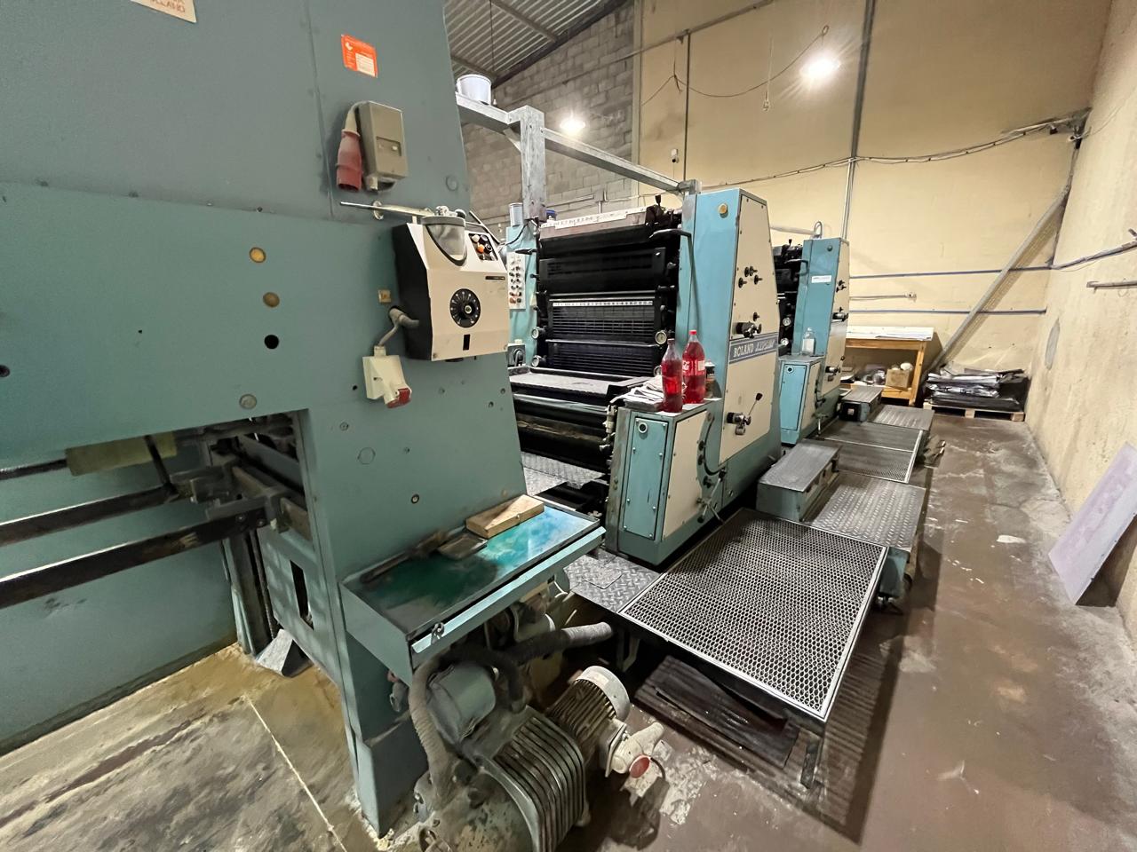 Impressora offset usada, marca Roland, modelo Favorit RVF, ano 1980, 4 cores, formato 52 x 72 cm, molha Rolandmatic (Alcolor), em produção.