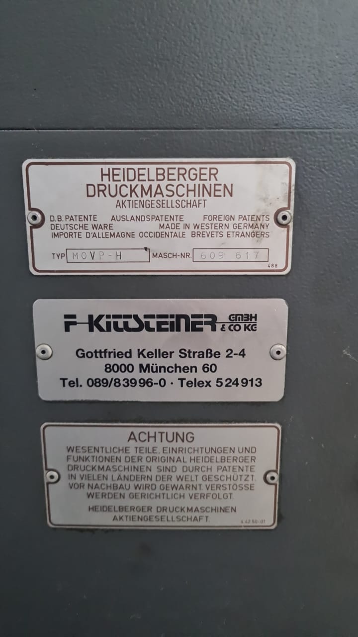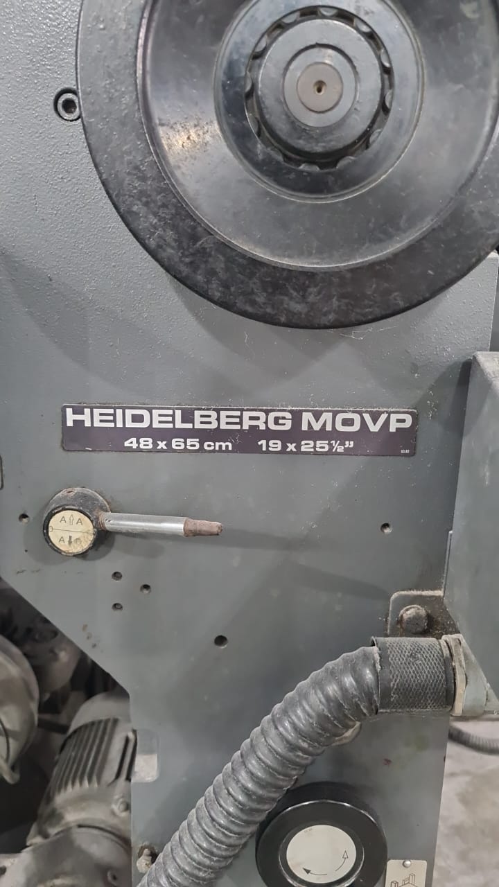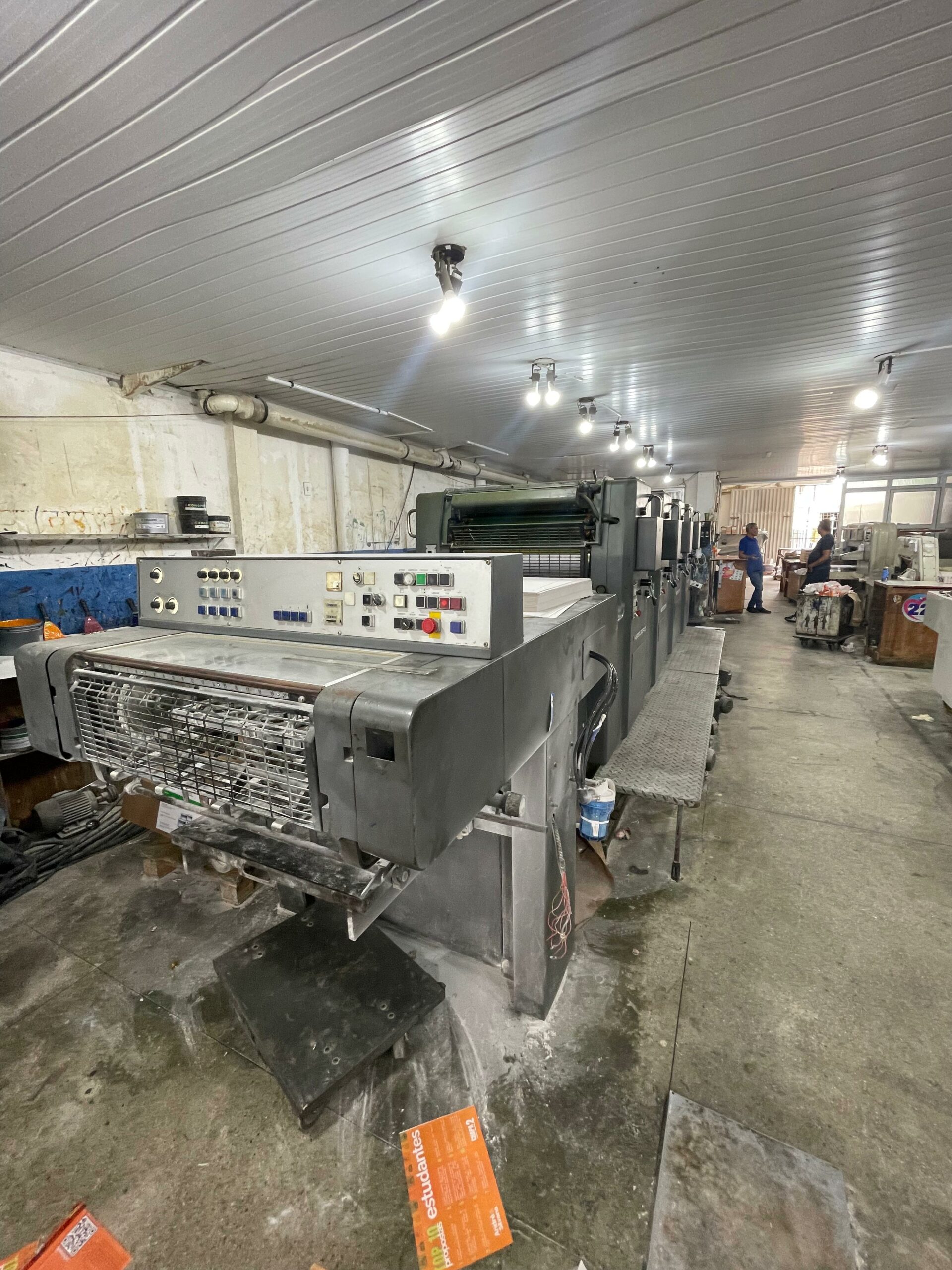 Impressora offset usada, marca Heidelberg, modelo MO VPH, ano 1986, 4 cores, formato 48 x 65 cm, equipada com CPC/CPTronic, molha Alcolor, pilha alta na saída, reversão 2/2, em produção.