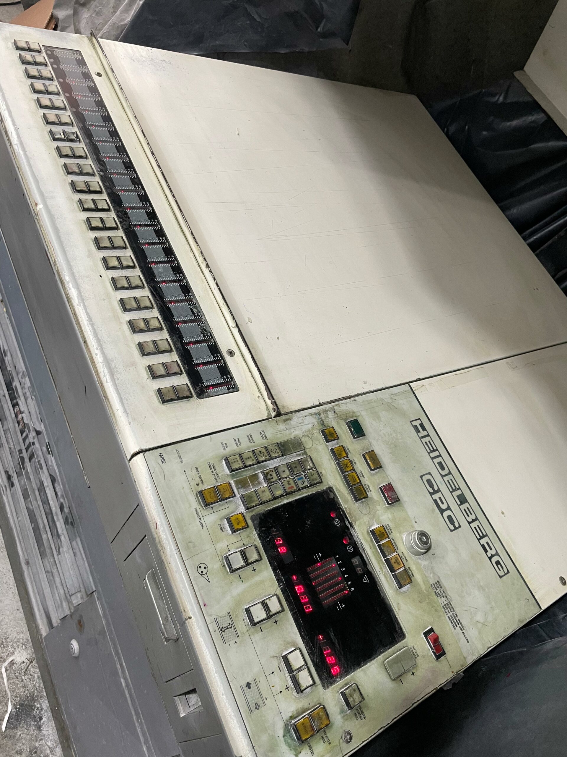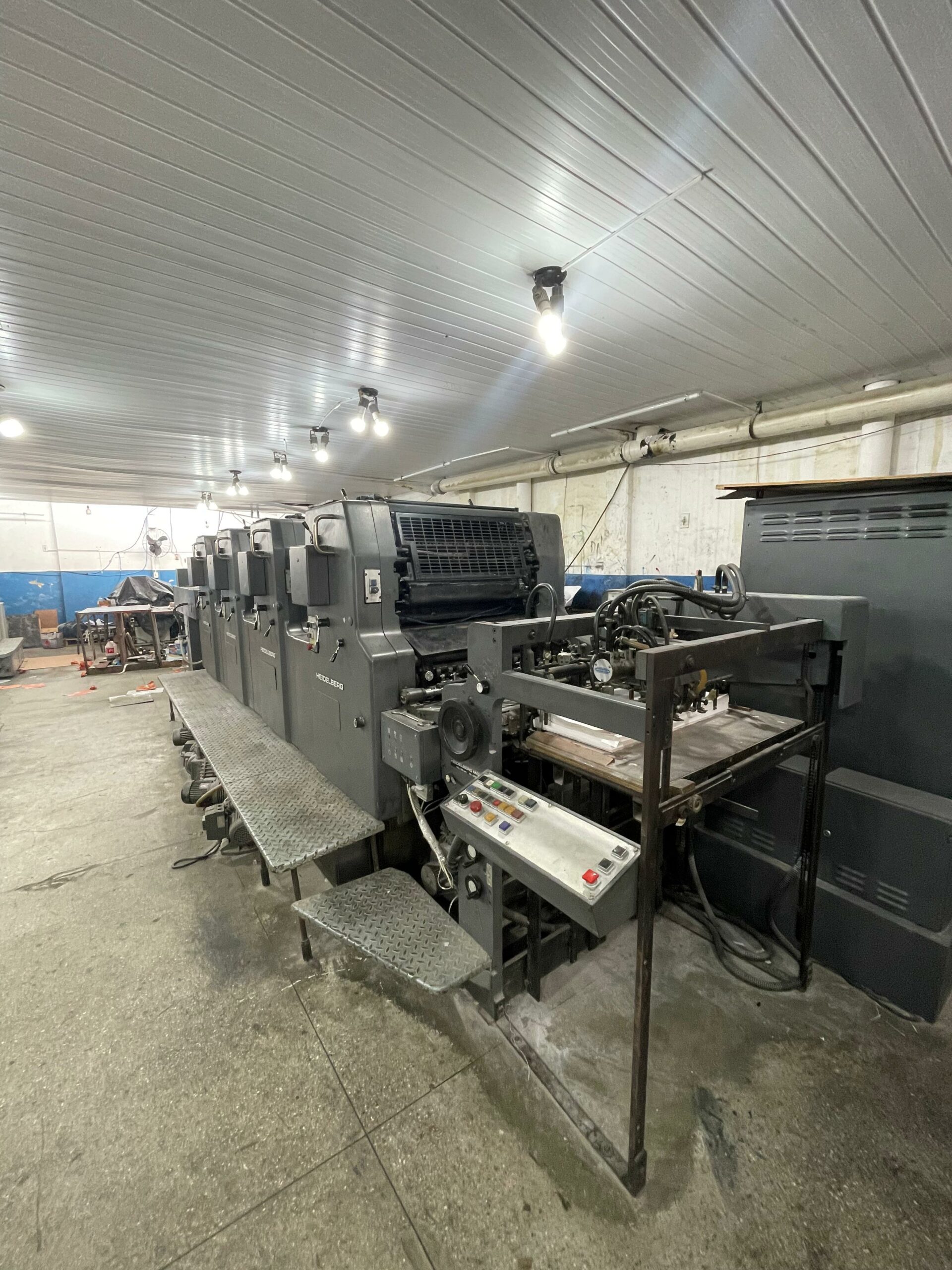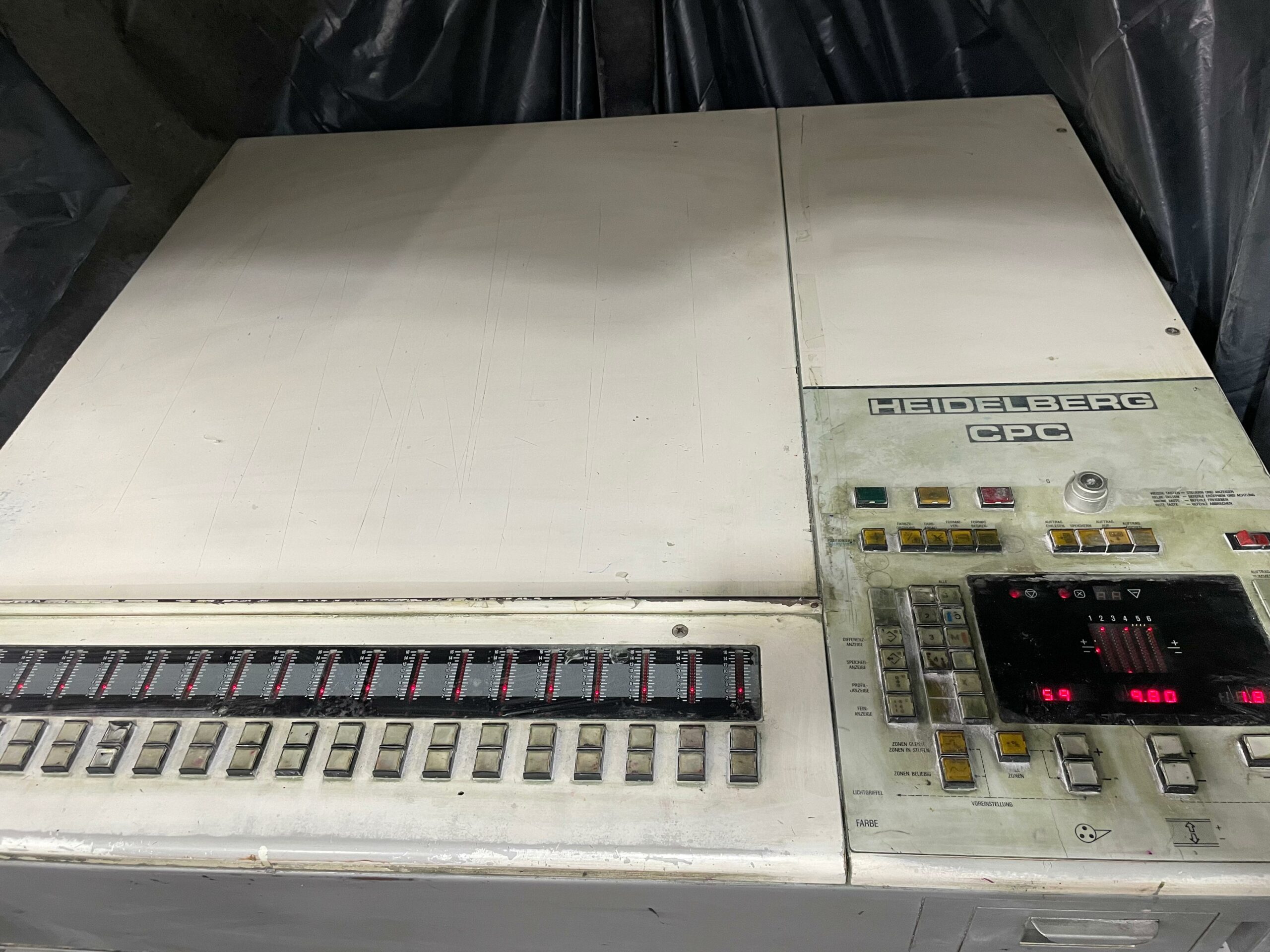 Impressora offset usada, marca Heidelberg, modelo MO VPH, ano 1986, 4 cores, formato 48 x 65 cm, equipada com CPC/CPTronic, molha Alcolor, pilha alta na saída, reversão 2/2, em produção.