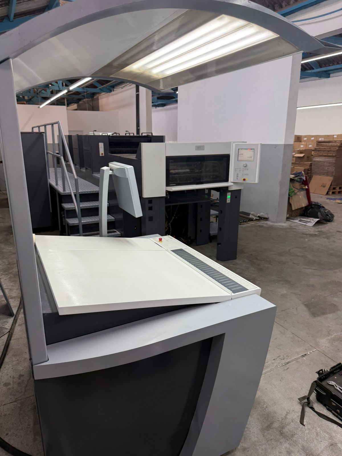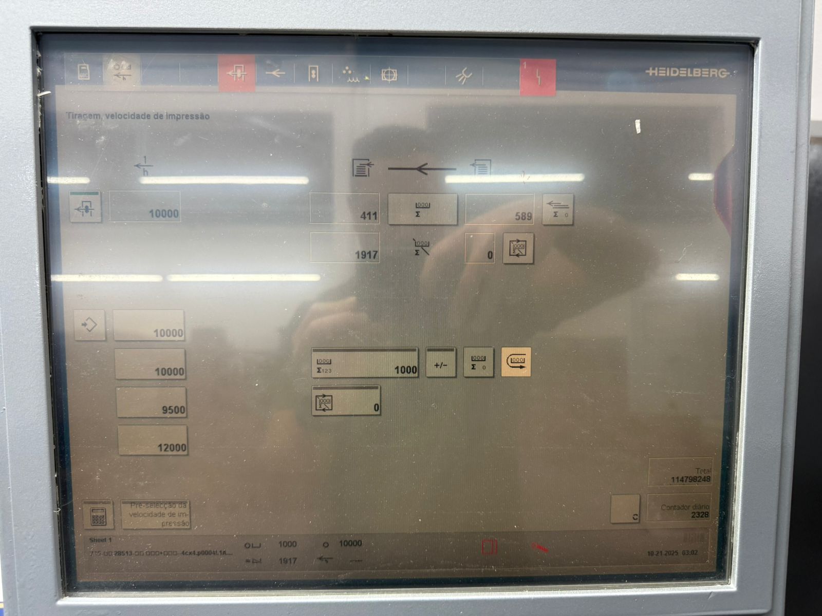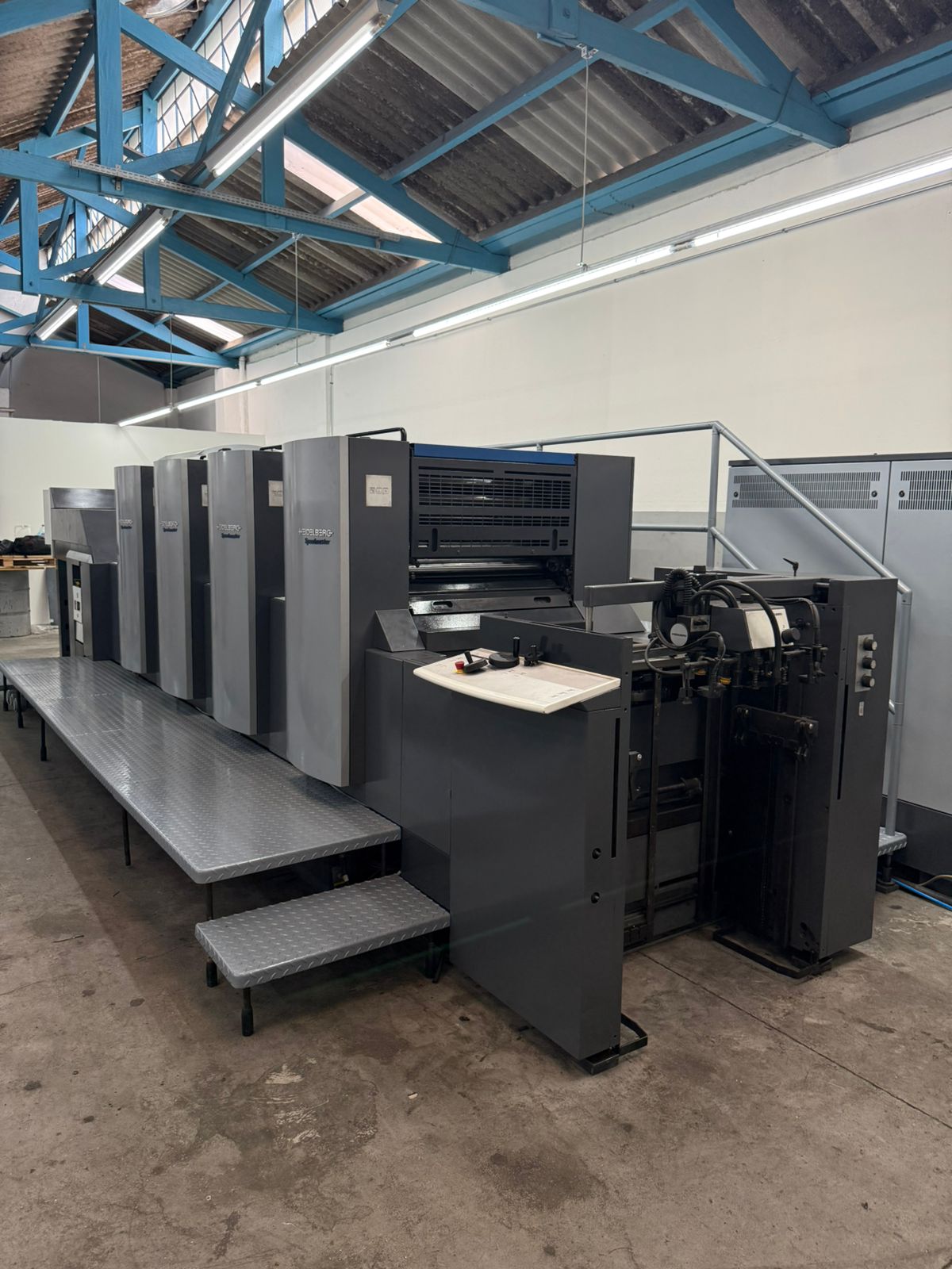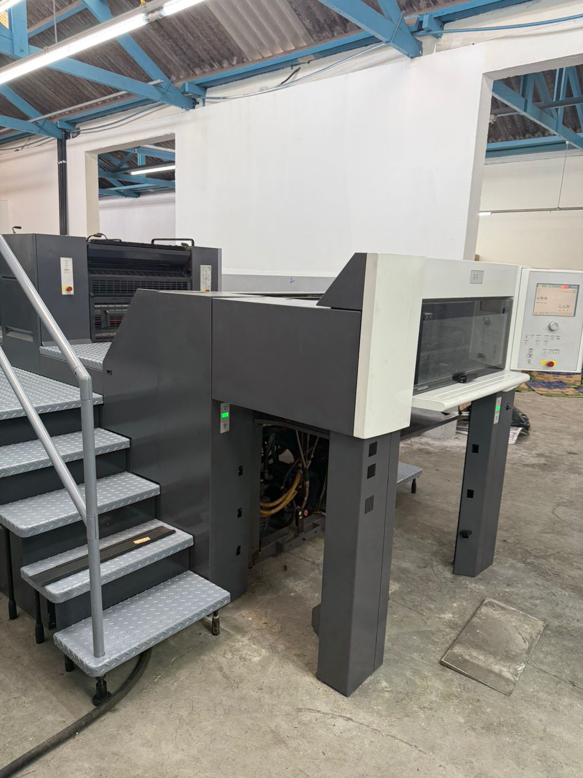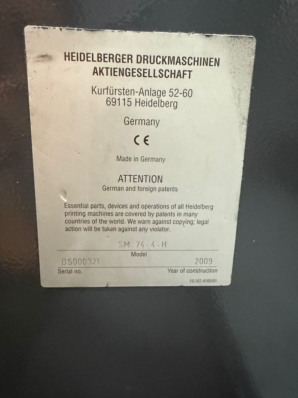 Impressora offset usada, marca Heidelberg, modelo SM 74-4 H, ano 2009, 4 cores, formato 52 x 74 cm, equipada com PressCenter, Autoplate, Preset, molha Alcolor, lavadores automáticos, pilha alta, em produção.