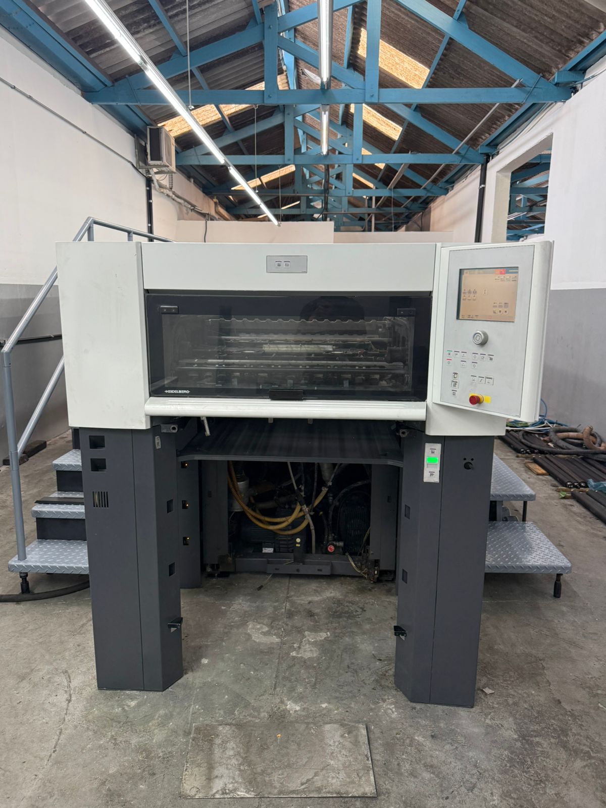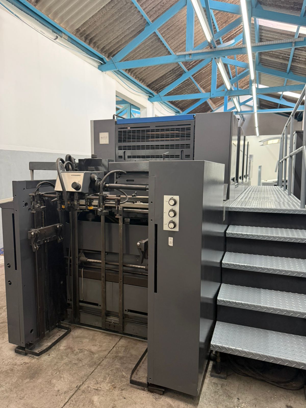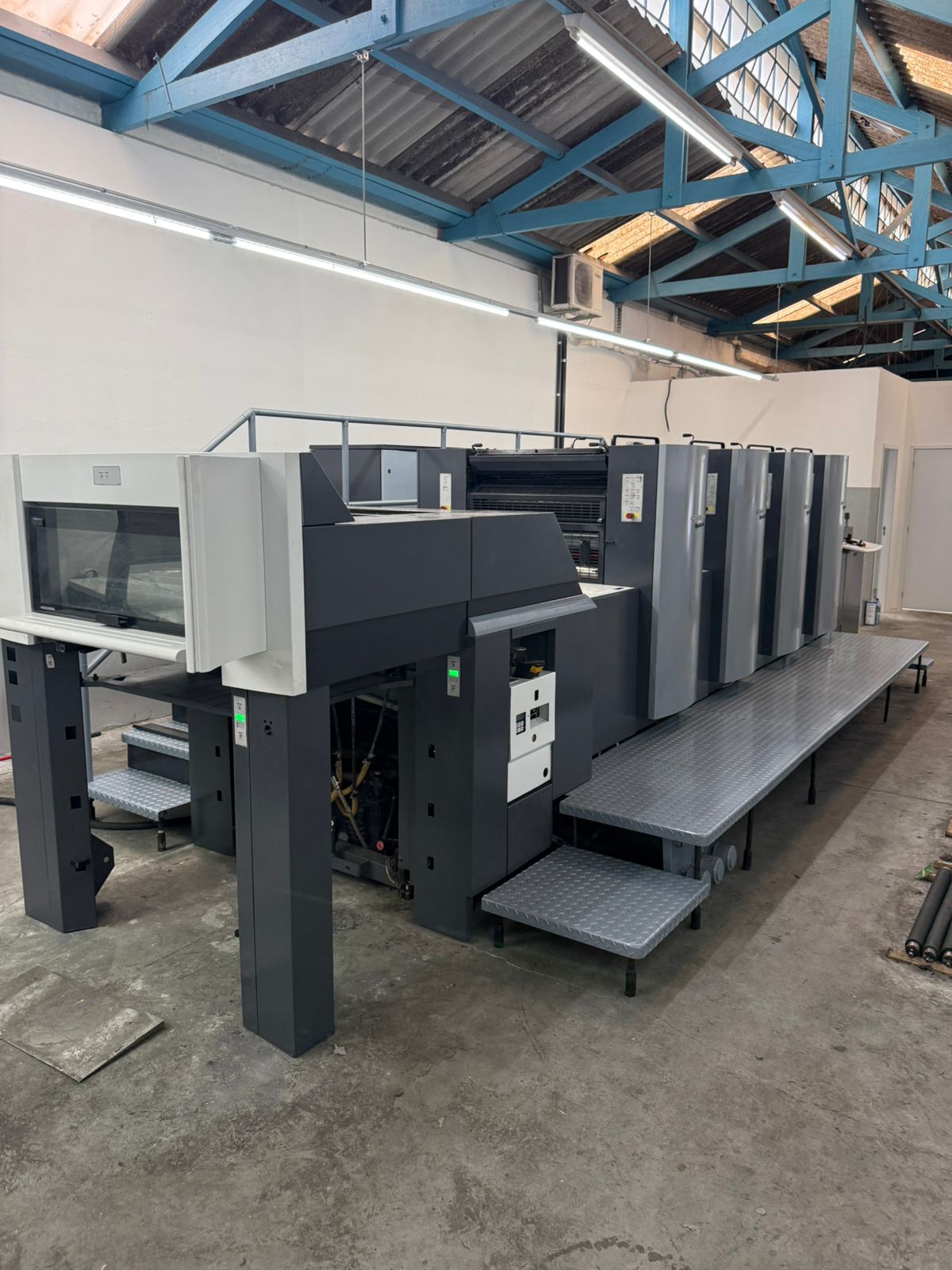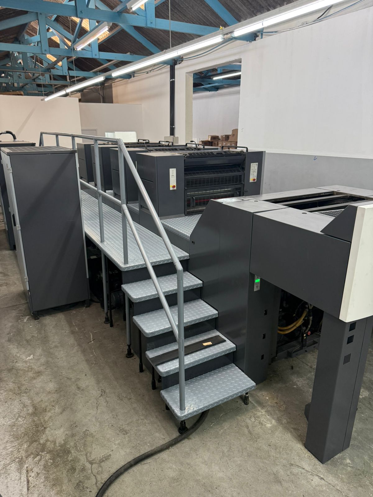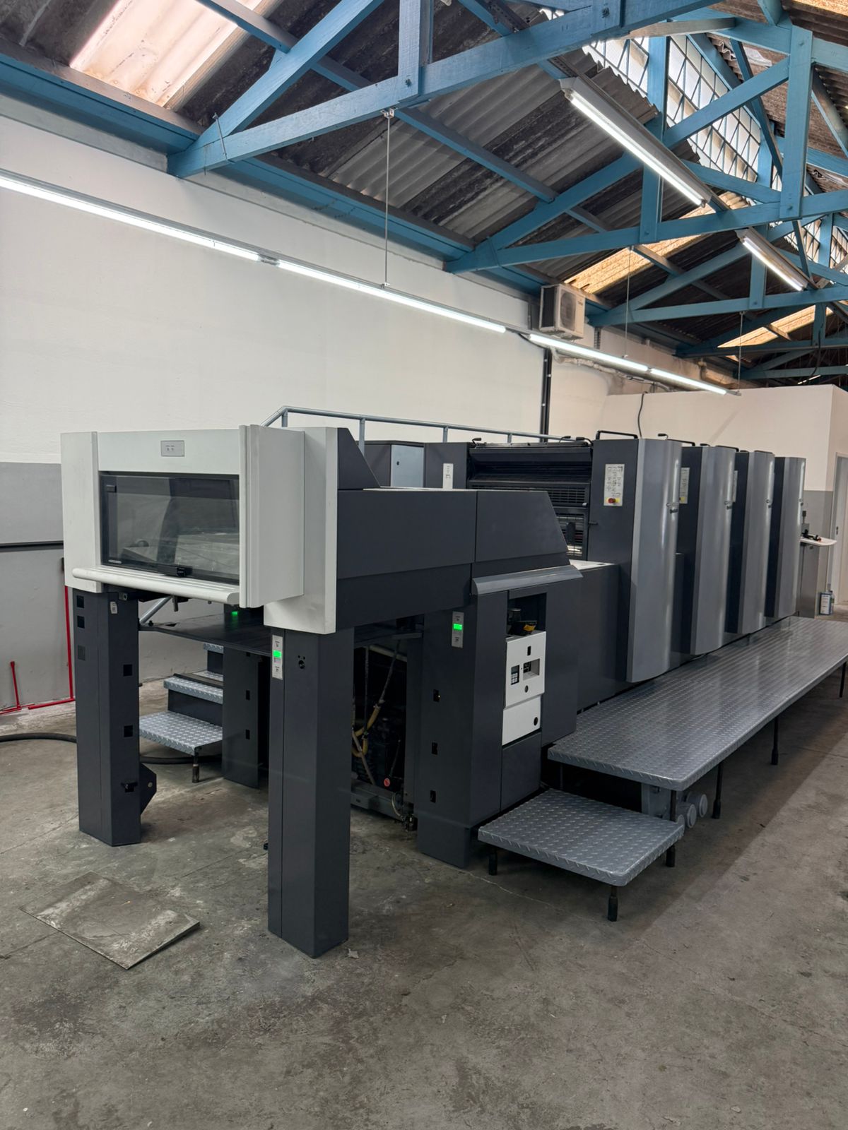 Impressora offset usada, marca Heidelberg, modelo SM 74-4 H, ano 2009, 4 cores, formato 52 x 74 cm, equipada com PressCenter, Autoplate, Preset, molha Alcolor, lavadores automáticos, pilha alta, em produção.