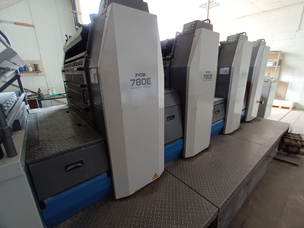 Impressora offset usada, marca Ryobi, modelo 784 E, ano 2008, 4 cores, formato 60 x 78 cm, equipada com PCS remote control, SAPC - troca de chapas semi-automática, lavadores automáticos, molha Ryobimatic, em produção com apenas 34 milhões de impressos.