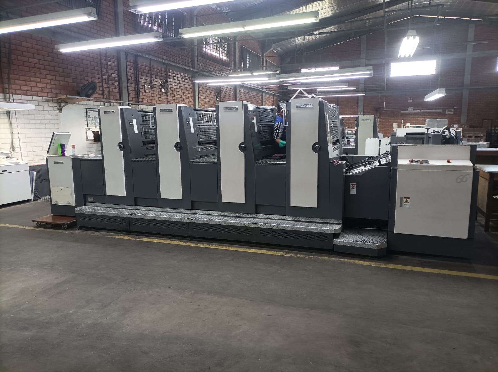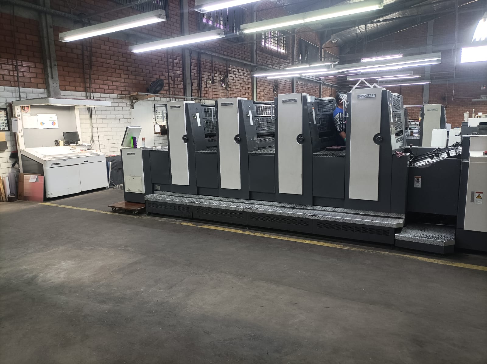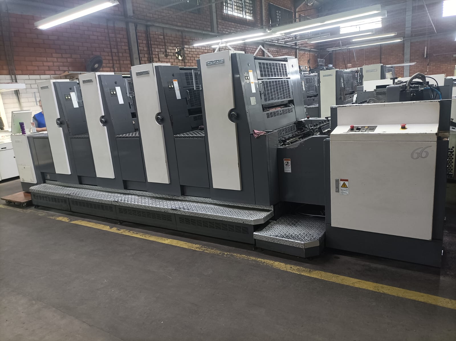Impressora offset usada, marca Shinohara, modelo 466, ano 2007, 4 cores, formato 48 x 66 cm, equipada com SAPC - troca de chapas, Console para acertos de tinteiros e registros, molha à álcool, refrigeração Baldwin, CIP3, velocidade máxima 13.000 IPH, único dono, em produção.